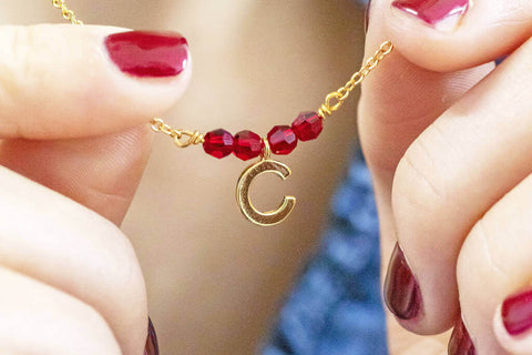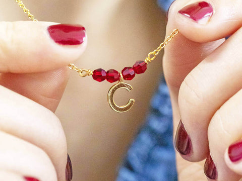 Our collections include a range of gold, rose gold and silver jewellery including friendship bangles, birthstone necklaces and bracelets, personalised initial charm pendants, dangle and stud earrings and our popular range of family birthstone pieces.